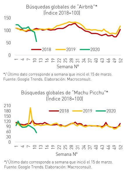 En el caso de ‘Machu Picchu’, la búsqueda cayó en 47% en la última semana. “La dinámica de este indicador en las próximas semanas, podría apuntar a una reducción significativa del turismo internacional hacia nuestro país, una vez levantada la cuarentena”, refirió.