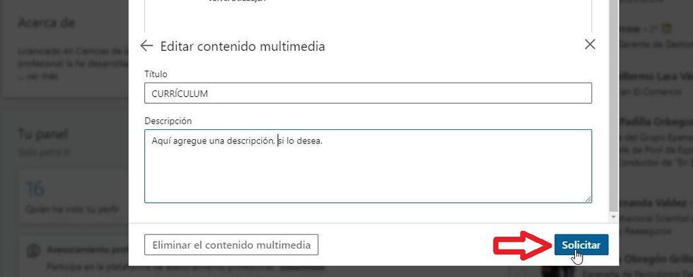 Recuerde que siempre podrá cargar un nuevo Currículum cuando llegue el momento, o eliminarlo si ya no tiene sentido que lo tenga en su perfil de LinkedIn.
