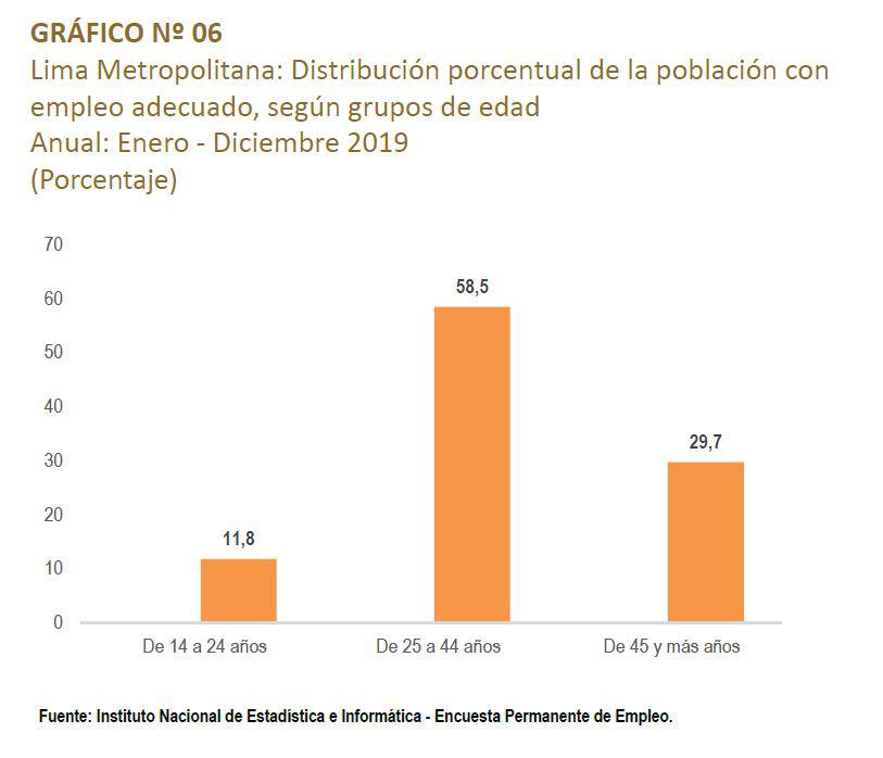 El empleo juvenil no mostró su mejor rostro el 2019. De acuerdo al último informe de la Situación del Mercado Laboral del INEI la participación de los jóvenes retrocedió 8.7% en relación al 2018 –“casi 10%”- lo que implica que cerca de 79,000 jóvenes no fueron absorbidos por el mercado laboral solo en Lima Metropolitana. El mercado laboral absorbió en mayor medida –el año pasado– a la población de 45 a más.