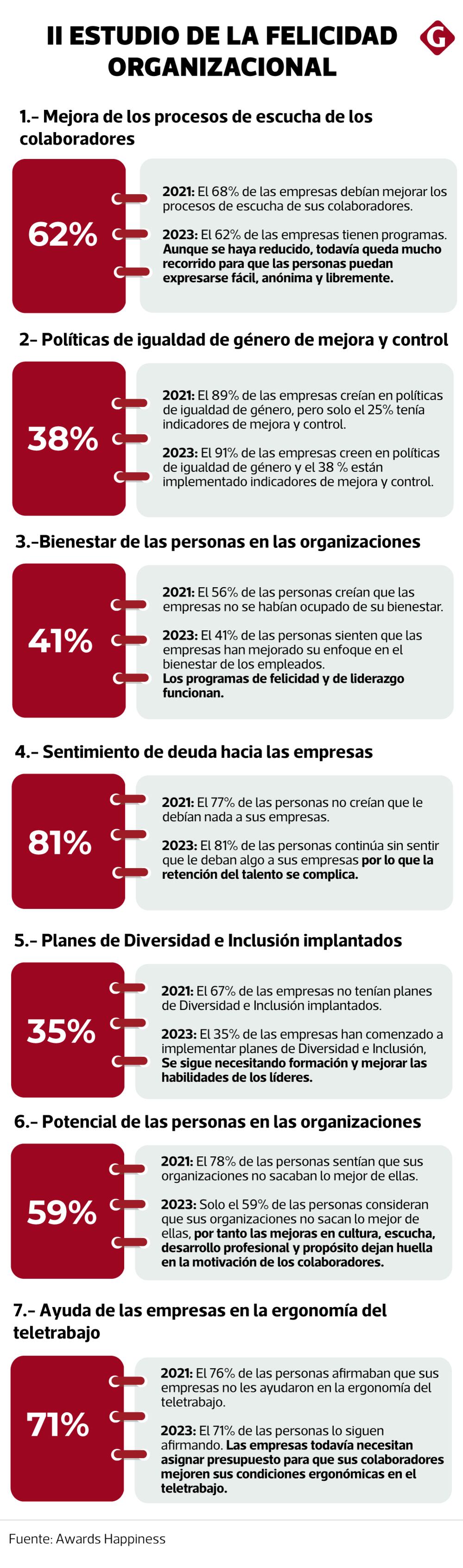 Es común que al tener un diálogo entre amigos se comente si uno está contento o no en su centro de labores. Precisamente, para conocer qué es lo que piensan los trabajadores al respecto se realizó el II Estudio de la felicidad organizacional, elaborado por Awards of Happiness.