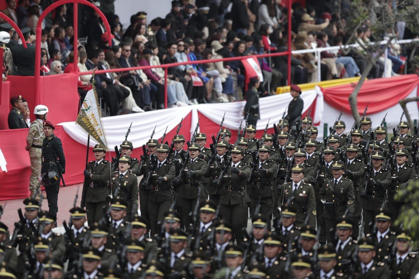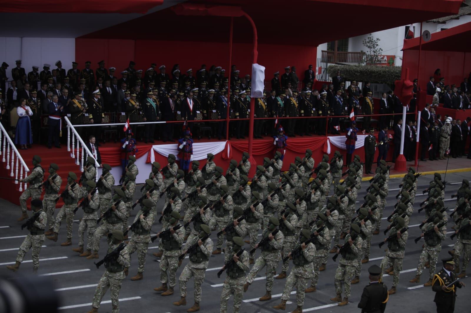La presidenta de la República, Dina Boluarte, participa en la Gran Parada y Desfile Cívico Militar que se lleva a cabo en la avenida Brasil, en el distrito de Jesús María.