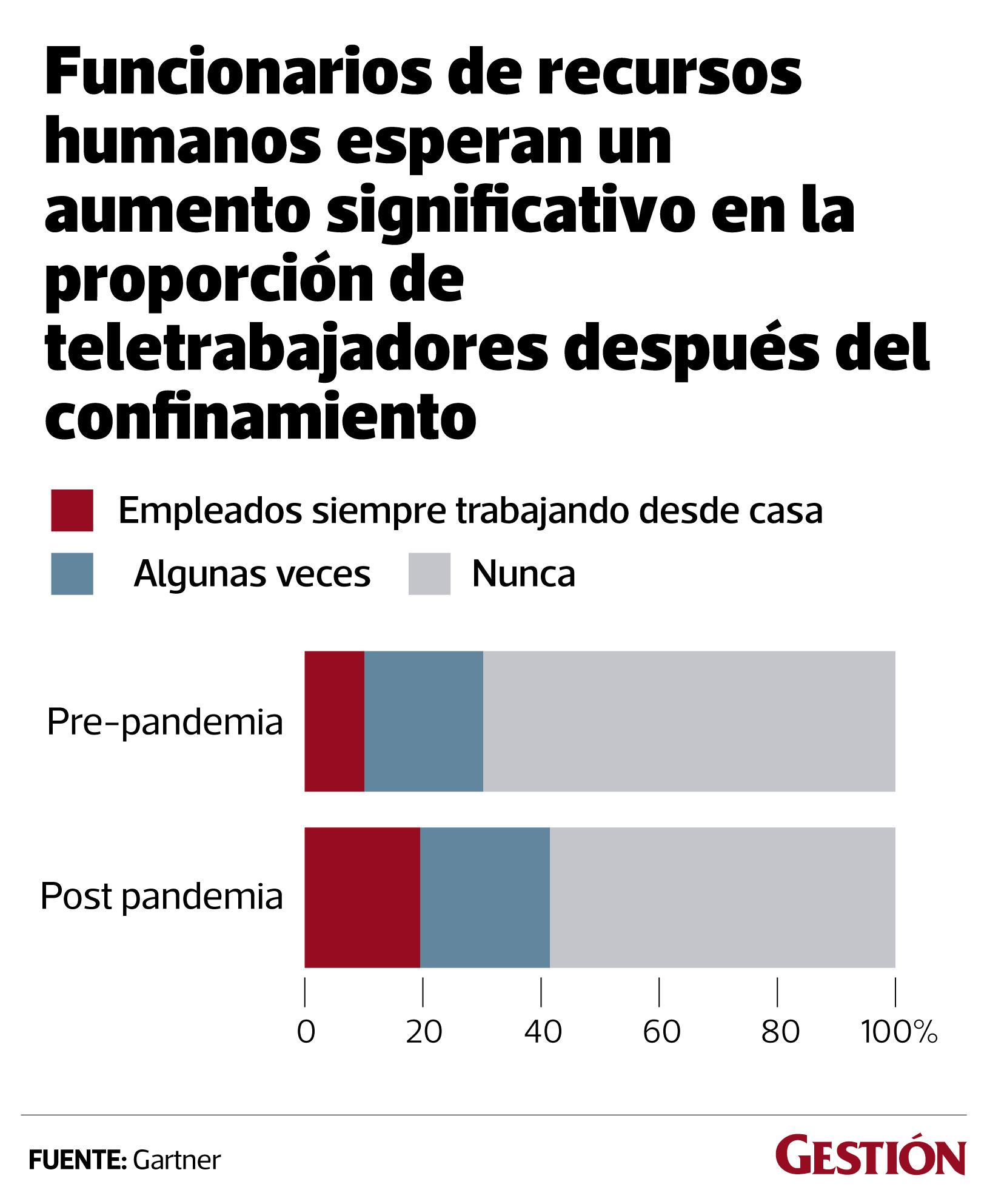 Entre las empresas con más de US$ 1,000 millones en ingresos, una parte sorprendentemente pequeña, tal vez el 10%, está acostumbrada a que gran parte de su fuerza laboral trabaje regularmente de manera remota, estima el analista de Gartner Inc., Brian Kropp.