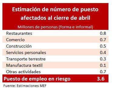 Abril es un mes crítico porque, según un análisis del MEF, 3.6 millones de puestos de trabajo están en riesgo (entre formal e informal), porque los trabajadores podrían dejar de laborar o de percibir un pago por sus labores.