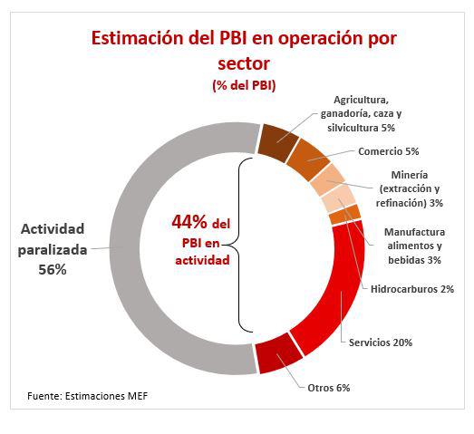 Según el MEF, la producción nacional está operando al 44% de su nivel habitual.