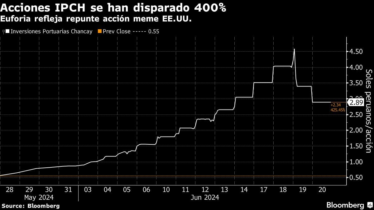 Eso ha convertido a Inversiones Portuarias Chancay SAA en la propia versión peruana de una acción meme. Pero en lugar de las publicaciones en Reddit de Roaring Kitty, algo muy diferente está inspirando a los inversionistas minoristas a dejar dinero en una somnolienta bolsa de América Latina.