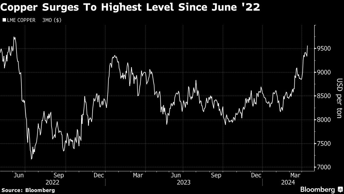 El cobre seguía su carrera alcista para alcanzar el nivel más alto desde junio de 2022, ya que los inversionistas apuestan a que la oferta reducida de mineral no podrá satisfacer la creciente demanda mundial.
