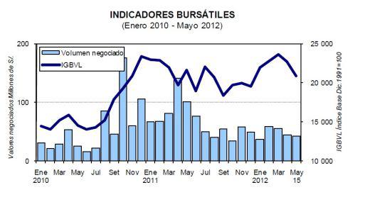 En el presente mes, al 15 de mayo, los índices General y Selectivo de laBolsa de Valores de Lima (BVL) se redujeron 8.0 y 7.3%, respectivamente, siguiendo a las principales bolsas de la región, según el BCR en su informe semanal.