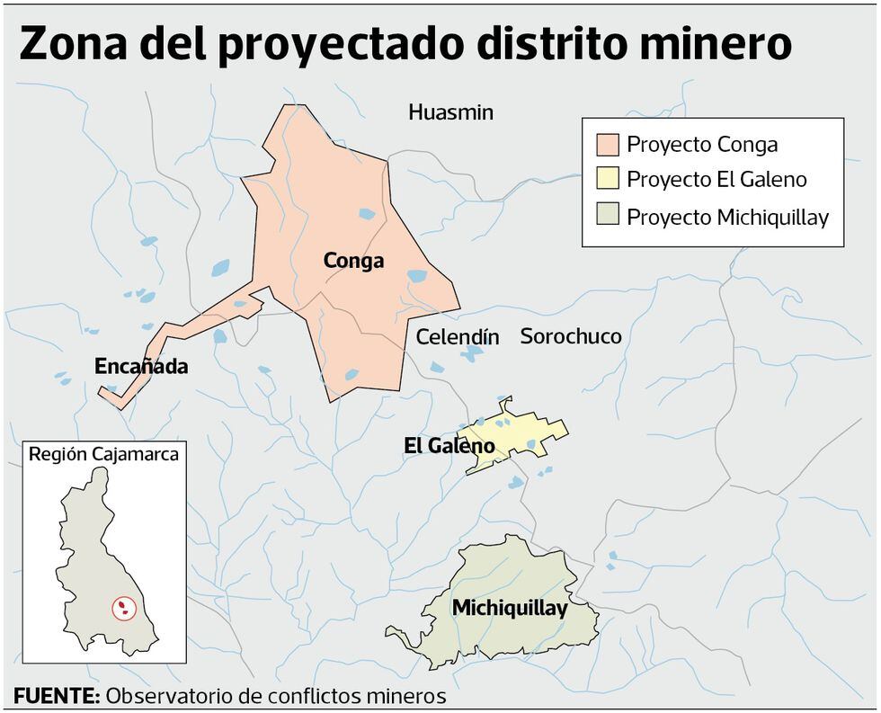Vale recordar que los tres proyectos tienen en común que se ubican a relativamente corta distancia entre sí en el distrito de La Encañada, en el sur del departamento de Cajamarca (ver mapa).