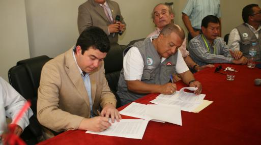El acuerdo fue suscrito por el ministro de Agricultura y Riego, Milton von Hesse, el jefe de la ANA, Jorge Montenegro, el presidente del Gobierno regional, Alonso Navarro y representantes de las Juntas de Usuarios y del PETACC de Ica en el marco de una ceremonia que se desarrolló en el auditorio de la Municipalidad Distrital de Pueblo Nuevo.
