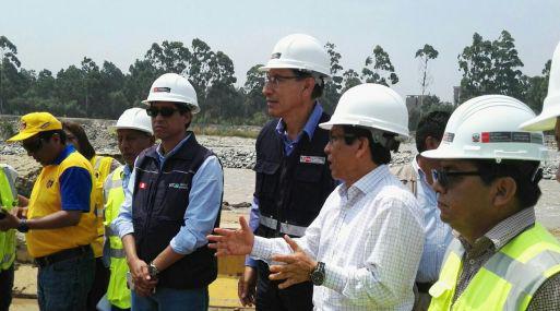 Acompañado del ministro de Transportes y Comunicaciones, Martín Vizcarra, el ministro Hernández inspeccionó las obras de reparación del puente que une la autopista Ramiro Prialé entre El Agustino y Huachipa, sobre la quebrada Huaycoloro.
