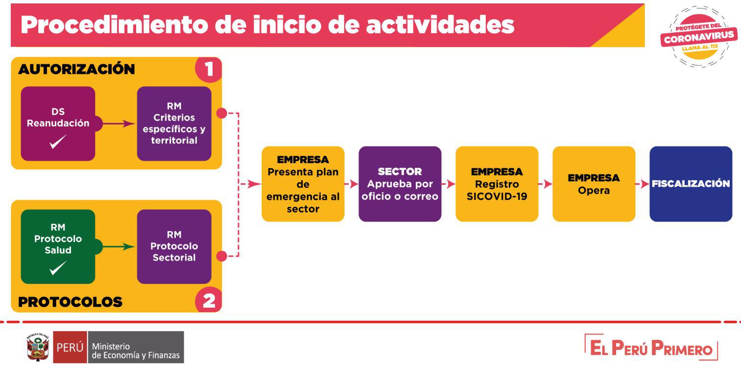De esta manera, recordó que ya la semana pasada el Ministerio de Salud (Minsa) aprobó los lineamientos generales, que dependiendo de la actividad en los próximos cinco días se tendrá que dar luz verde a los protocolos especiales según la actividad económica.