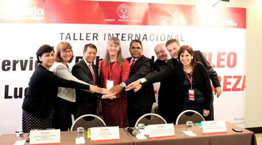 En el acto inaugural del Taller participaron la Viceministra de Trabajo, Sylvia Cáceres; el Secretario General, Alfonso Adrianzen, la Presidenta de la Asociación Mundial del Servicio Público de Empleo (AMSPE), Elisabet Arp y el Vice-Presidente de las Américas de la AMSPE, Bienvenido Castillo.