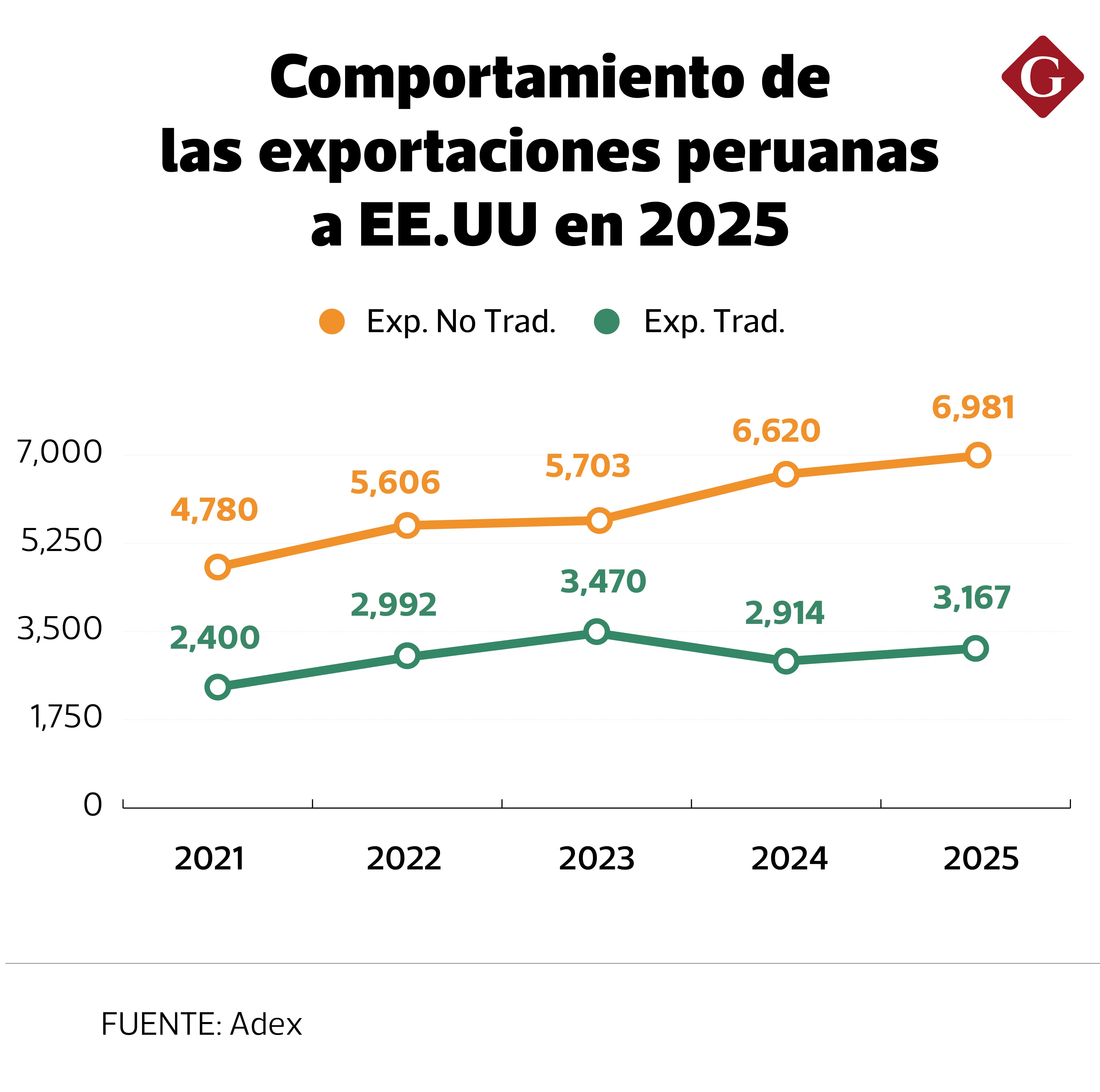 Cabe recordar que, según datos de Adex, pese a los aranceles, el año pasado el Perú logró sumar US$ 10,143 millones en exportaciones a Estados Unidos, lo que fue alrededor de 6% mayor que lo alcanzado en 2024.