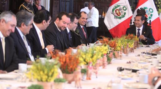 Lima (Andina).- El jefe del Estado, Ollanta Humala, sostuvo una reunión con los principales gremios empresariales y ministros de Estado, en Palacio de Gobierno, a fin de analizar las medidas impulsadas por el Ejecutivo para acelerar las inversiones en el país.