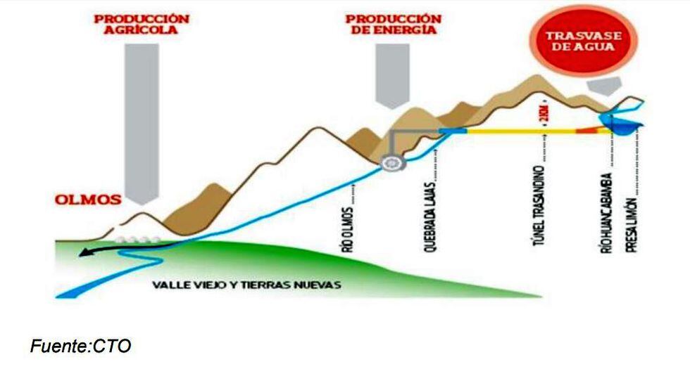 Para ello, se construyó el túnel trasandino de 19 km para trasladar agua a razón de 406 hectómetros cúbicos al año, para el Gobierno Regional de Lambayeque (GRL), que se usará en el proyecto de irrigación (que está a cargo de H2Olmos).