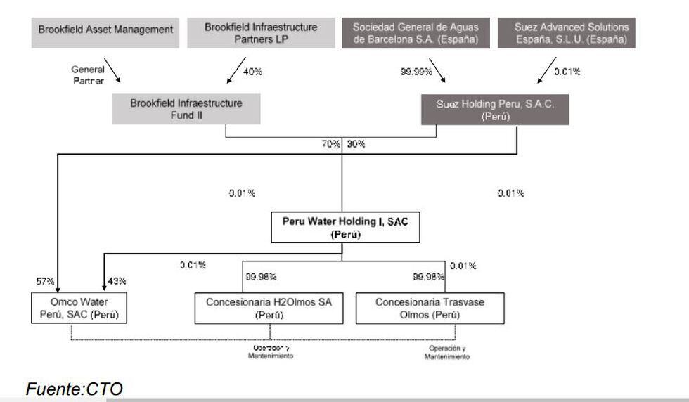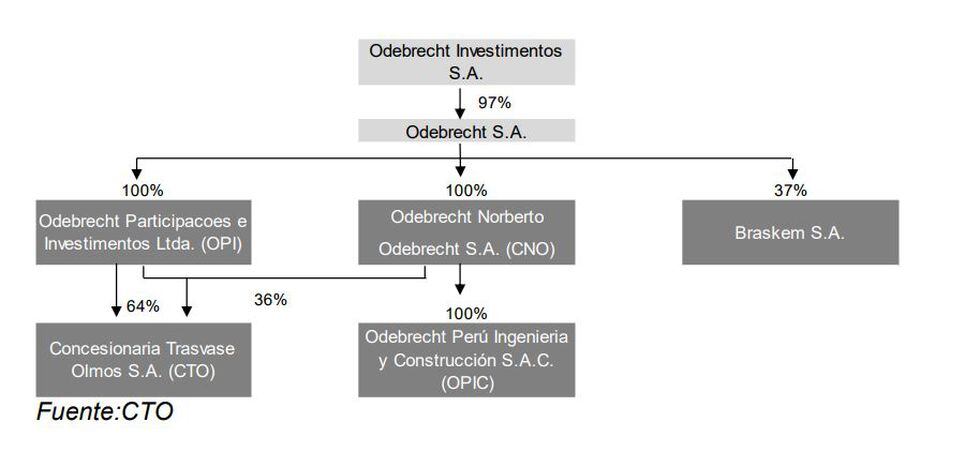 En esta oportunidad mostramos el primer proyecto, que es el traslado de las aguas del Río Huancabamba para el proyecto de irrigación, para lo cual se creó la empresa Concesionaria Trasvase Olmos (CTO), cuyo 100% de acciones corresponden al grupo Odebrecht.