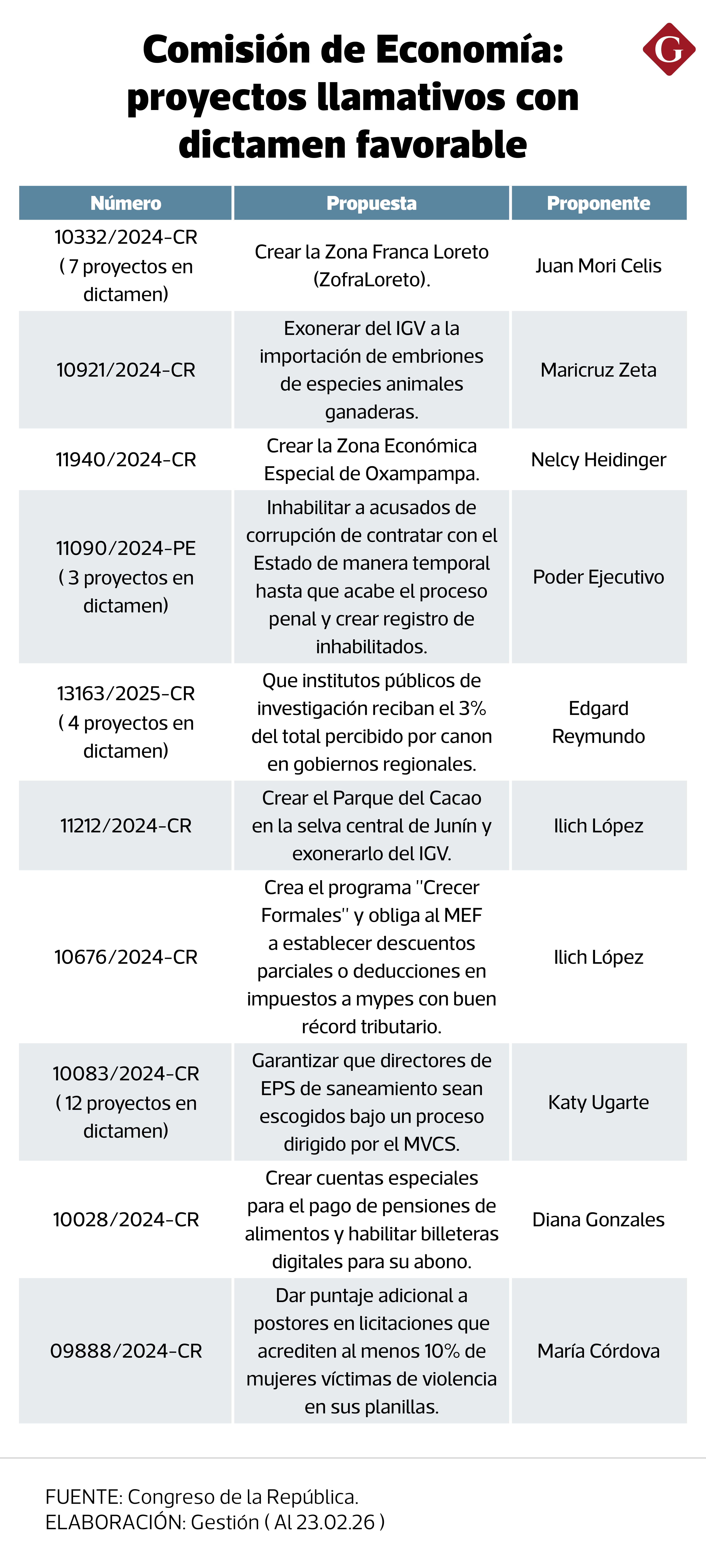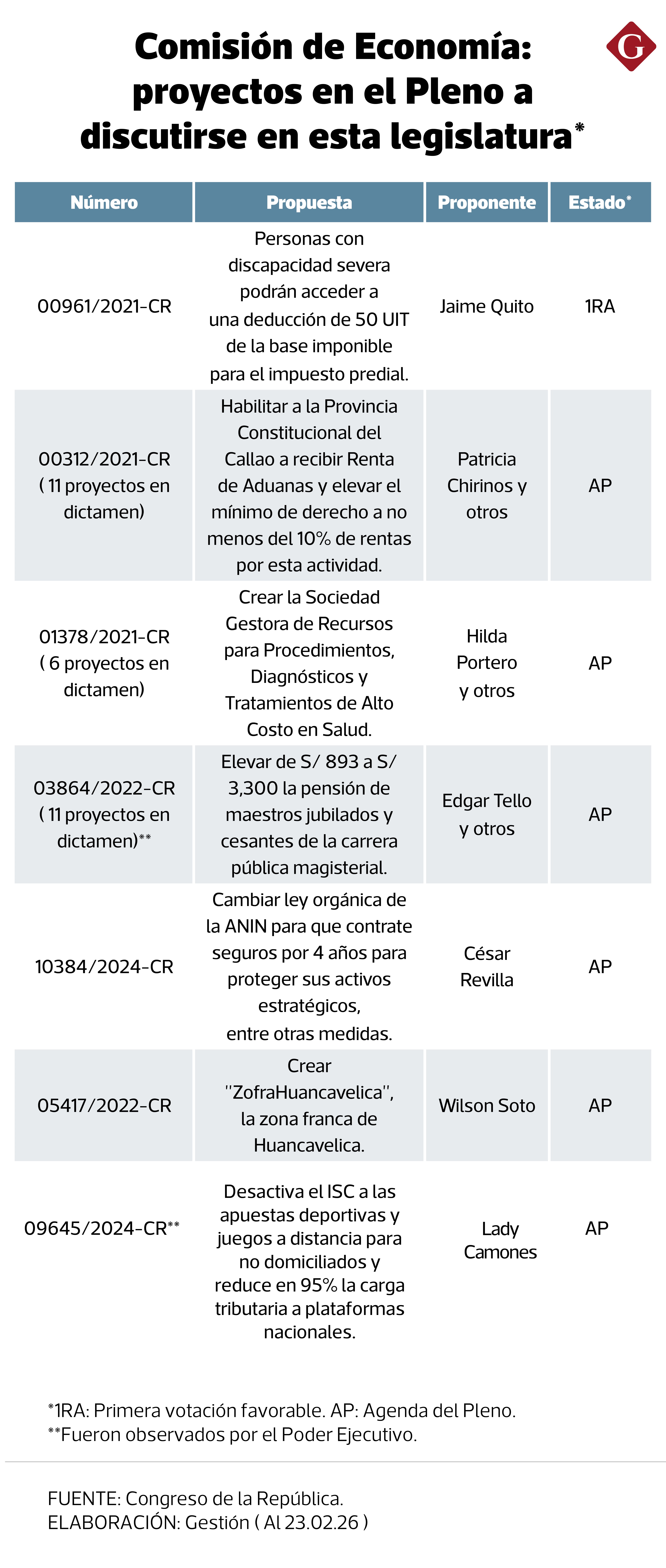 En marzo vuelven las sesiones del Pleno del Congreso de la República del Perú y una de las comisiones que aguarda ese momento es, sin duda, la de Economía. Un importante grupo de su trabajo parlamentario podría hacerse ley en esta última legislatura del periodo 2021-2026.