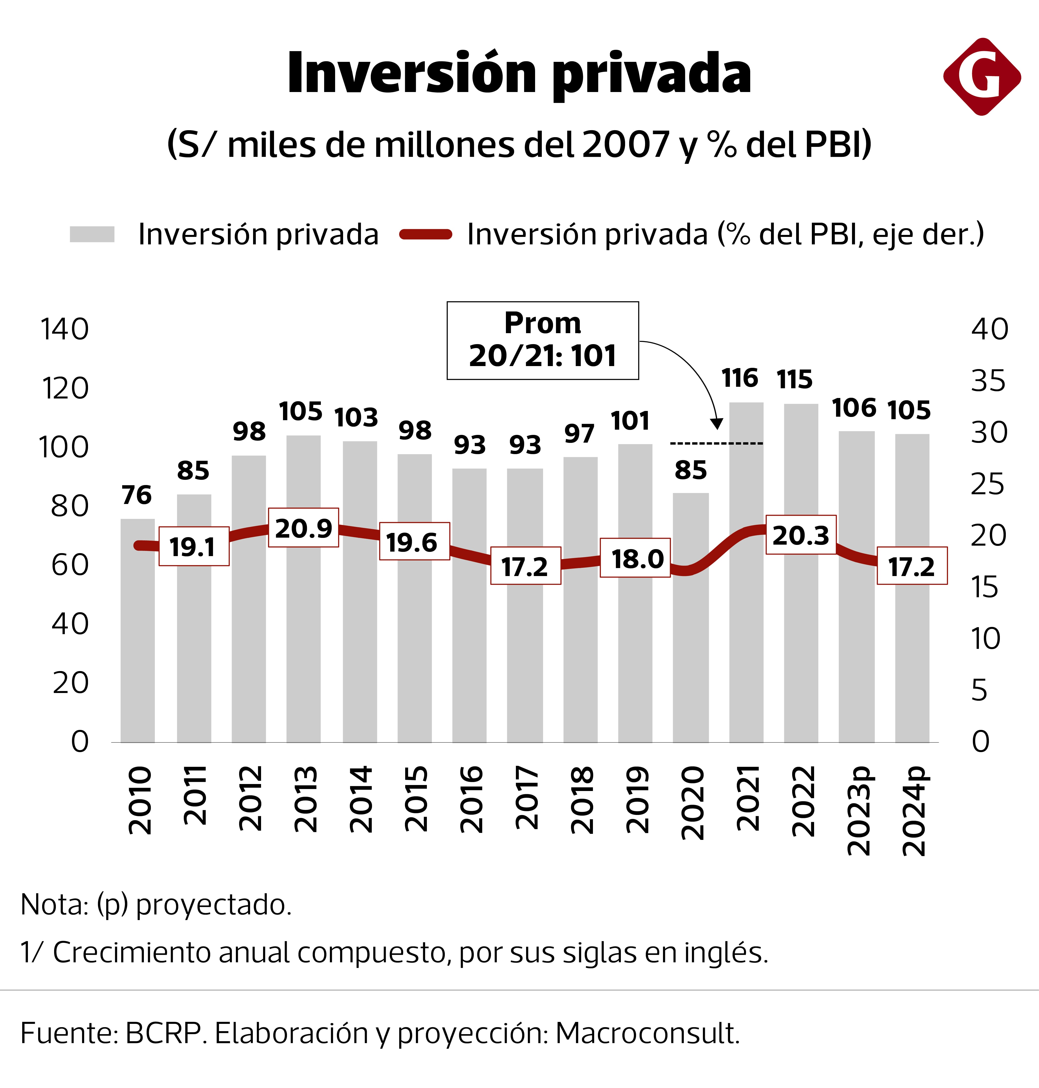 Por eso -agrega- el consumo no es negativo. Para este año, Macroconsult proyecta un crecimiento del consumo privado de 1.7% y de 2.4% para el 2024.
