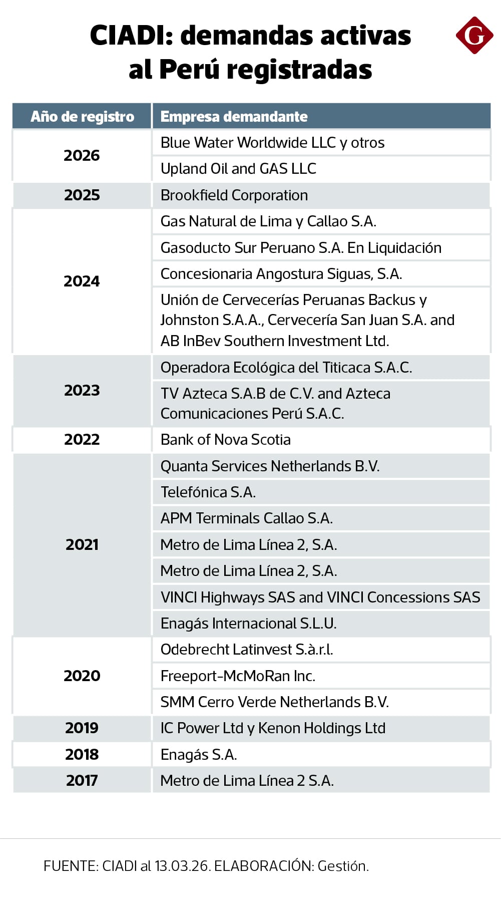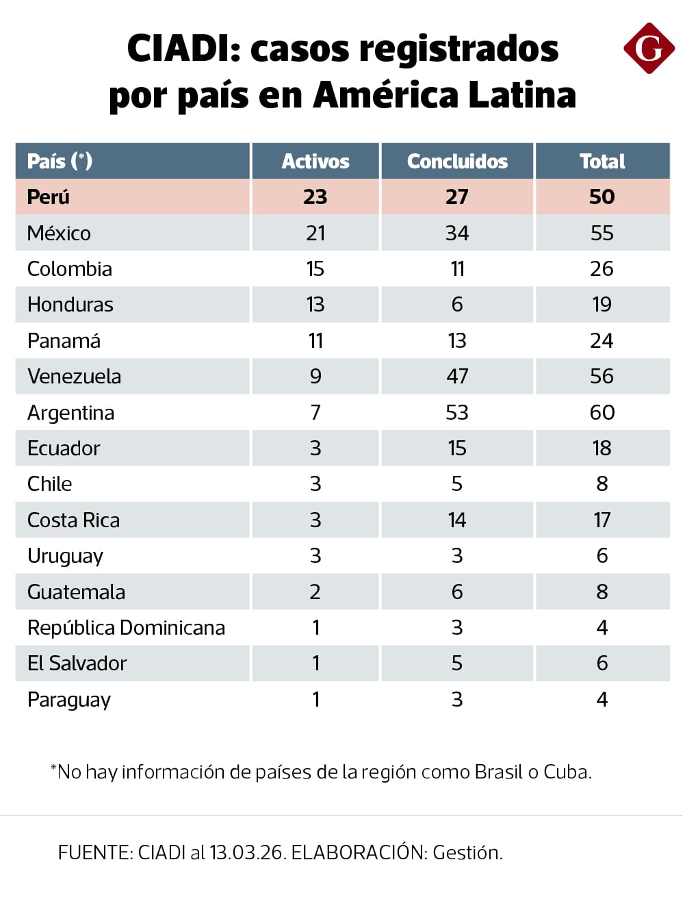 Recuperó el primer puesto. Como consecuencia de dos casos nuevos registrados en lo que va del 2026, Perú nuevamente es el país de América Latina que más casos activos tiene ante el Centro Internacional de Arreglo de Diferencias relativas a Inversiones (CIADI).