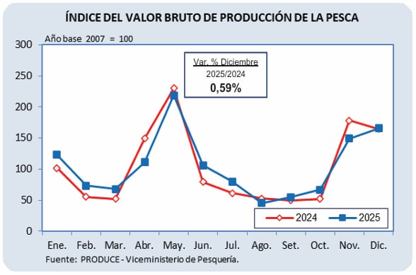 Solo en diciembre, la producción del sector que agrupa pesca marítima y continental creció 0.59%.