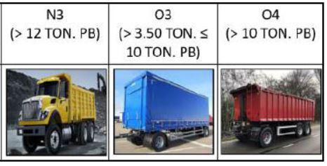 Esta norma se aplica a los vehículos de las categorías N2 (mayor a 6.5 toneladas), N3, O3 y O4.