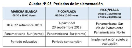 La Municipalidad de Lima sostiene que, la entrada en vigencia de la presente norma, se inicia con un Periodo Educativo a través del cual, la Gerencia de Transporte Urbano, la Policía Nacional del Perú y demás órganos y/o entidades encargadas, desarrollarán campañas de educación, información y concientización respecto a los criterios, condiciones, etapas, plazos, horarios y demás términos establecidos en la presente norma.