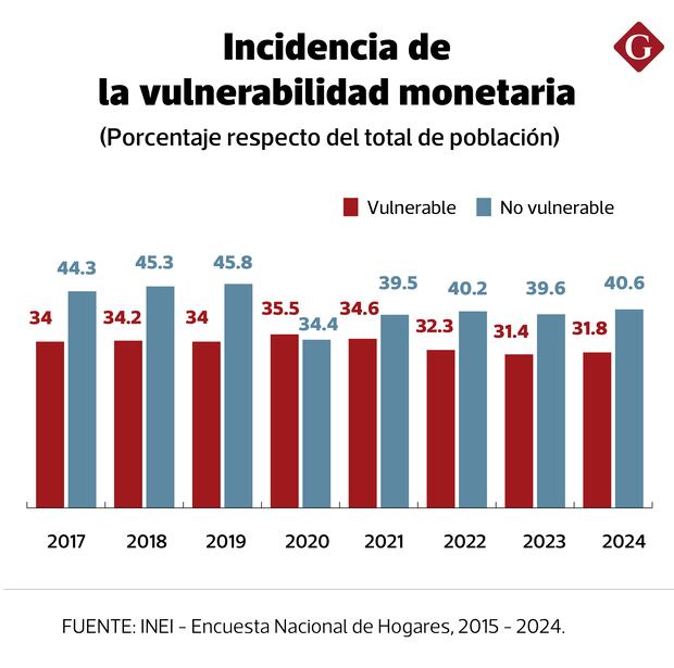 En el 2024, la pobreza monetaria afectó al 27.6% de la población. Para este año, esperamos se reduzca a 26.4%. Hay situaciones económicas que han impactado, pero este cambio está alineado al mayor crecimiento económico que estamos esperando, que va a impulsar más creación de empleo y aumento de ingresos de los hogares.