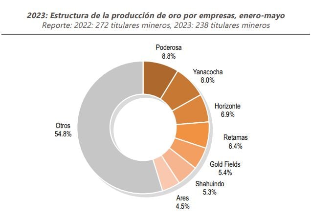 También mencionó que a eso se suma las trabas burocráticas para los permisos ambientales durante varios años. Agregó que la Compañía Minera Poderosa es líder en la producción de oro, pero no necesariamente porque haya crecido en nuevas unidades mineras, sino porque tiene un acopio en donde canalizan el metal de distintas localidades del país.