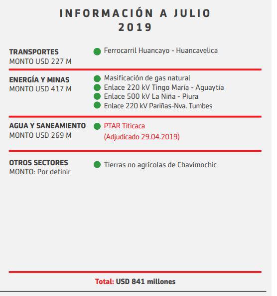 En cuanto a los proyectos en cartera para los años 2019 -2022, ProInversión informa que se ha descendido en 7 proyectos, respecto a la información que tenía en enero de este año.