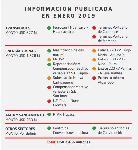 “En enero 2019 se daba cuenta de 58 proyectos de los cuales, 6 fueron retirados del portafolio, 3 se encuentran suspendidos y 1 de ellos no tiene en este momento una fecha estimada de Buena Pro. Además, se están considerando 3 proyectos adicionales para el período 2019-2022.