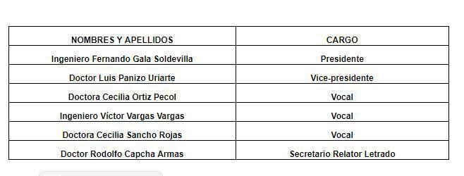 Mientras que Cecilia Ortiz Precol; Víctor Vargas Vargas y Cecilia Sancho Rojas se desempeñan como vocales del Consejo de Minería.
