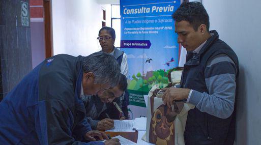 Con la presencia de representantes de siete organizaciones de pueblos indígenas del Perú se dio inicio al proceso de consulta previa del Reglamento de la Ley Forestal y de Fauna Silvestre, el cual sería aprobado en enero del 2015, informó hoy el Servicio Nacional Forestal y de Fauna Silvestre (Serfor).