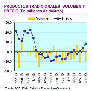 Sin embargo, la propagación mundial del coronavirus, en especial a Estados Unidos y Europa (nuestros principales mercados de destino de exportación no tradicional) y la caída de los precios de los metales (que continuarían impactando nuestros productos tradicionales) podrían originar mayores pérdidas en marzo.