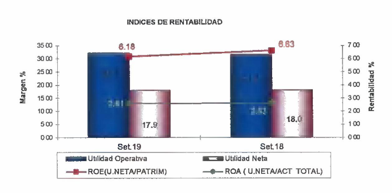 En cuanto a la rentabilidad patrimonial financiera (ROE), ésta fue de 6.2% a setiembre de este año, menor a la registrado en similar periodo del 2018 (6.6%).