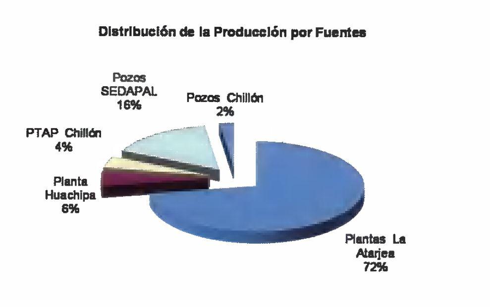 Para el abastecimiento de agua, Sedapal cuenta con tres plantas de tratamiento, de las cuales dos se ubican en la Atarjea y una en Huachipa, con pozos tubulares de extracción de aguas subterráneas y adicionalmente compra agua al Consorcio Agua Azul S.A. (Concesionaria de la PTAP Chillón).