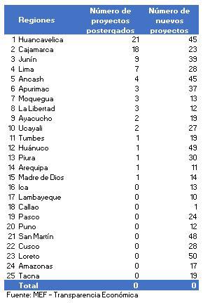 El portal de transparencia Económica del MEF también reporta los proyectos que las regiones han dispuesto que sean postergados.