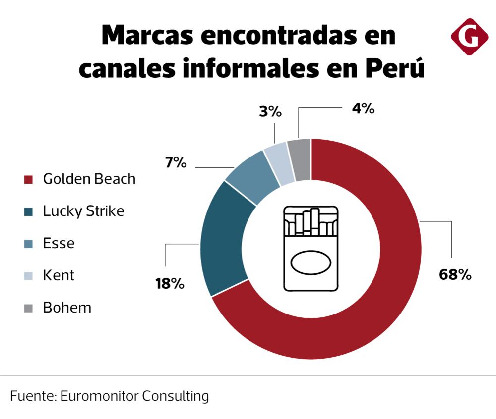 La principal marca que ingresarían de forma ilegal al Perú es Golden Beach (65% del total de cigarros ilícitos). Otras marcas también identificadas por Euromonitor son Lucky Strike o Carlyle. Todas provienen de Paraguay.