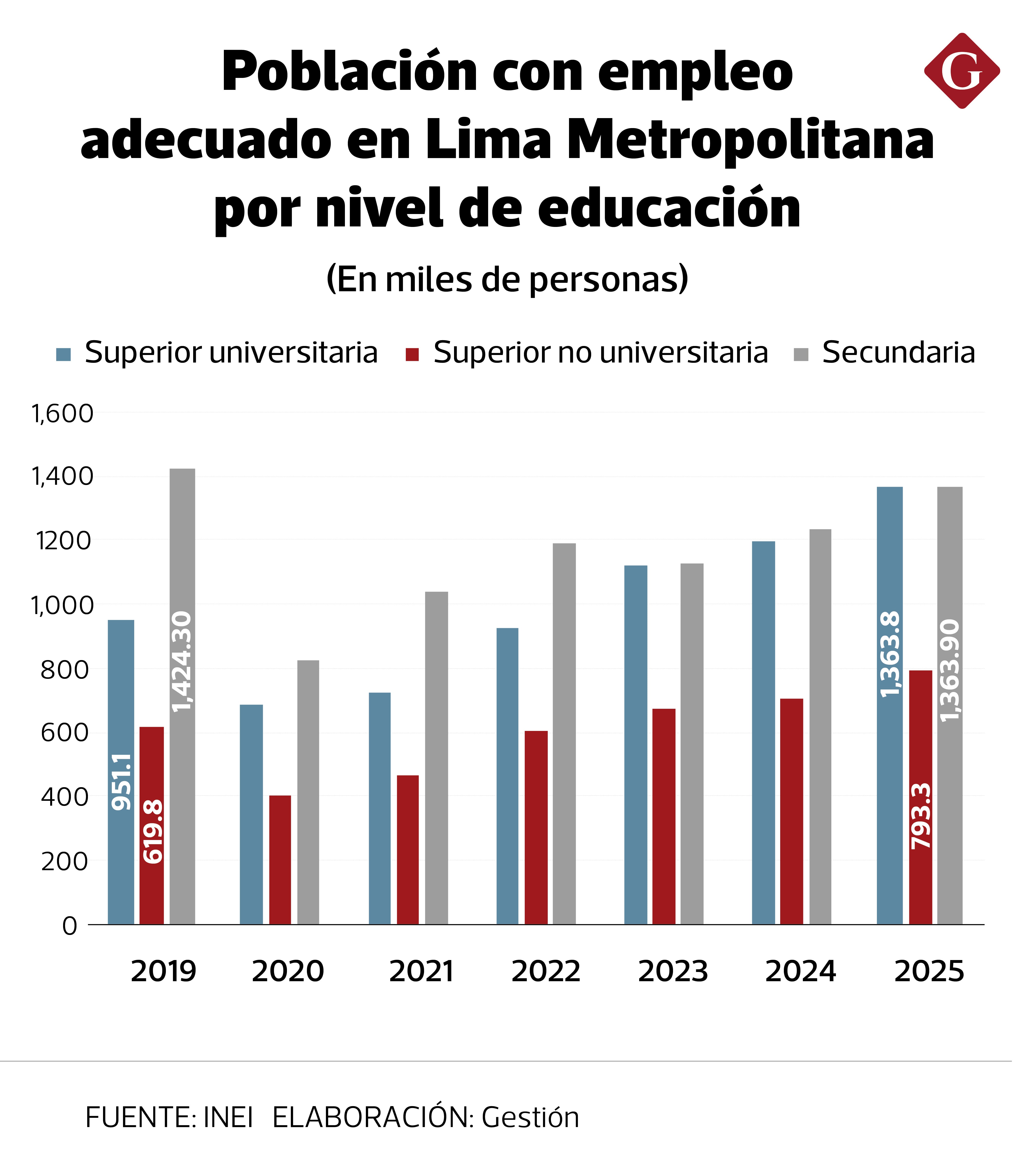 Seis años después, los trabajadores de mayor calificación comparten el primer lugar con quienes culminaron el colegio. Ambos rubros explicaron más de 1.36 millones de plazas al cierre del 2025.