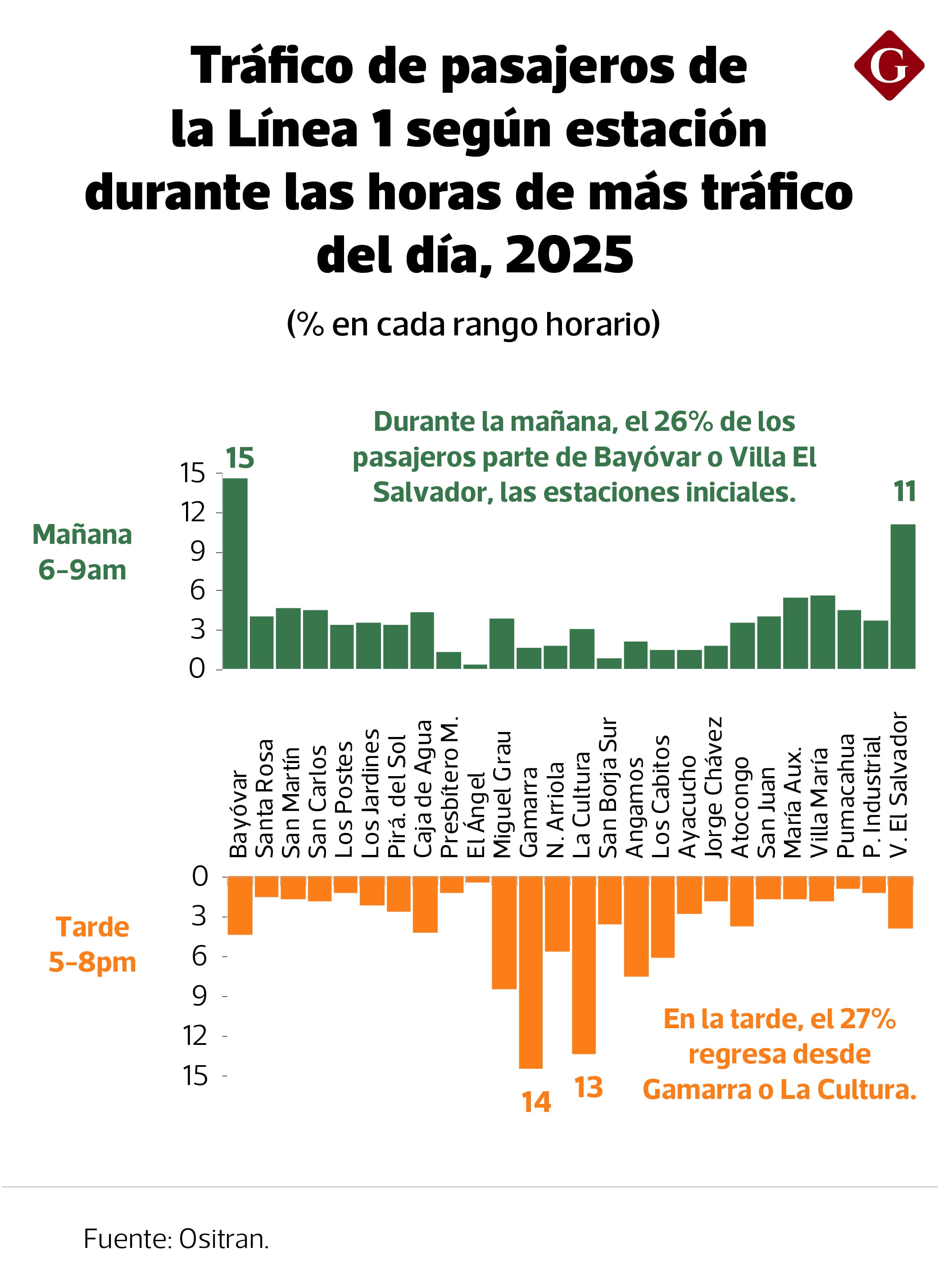 Por ejemplo, alrededor de un cuarto de los usuarios de la Línea 1 se traslada en las mañanas desde las estaciones Bayóvar o Villa El Salvador y retorna por la tarde desde Gamarra o La Cultura, un recorrido de 14 kilómetros en su tramo más corto.