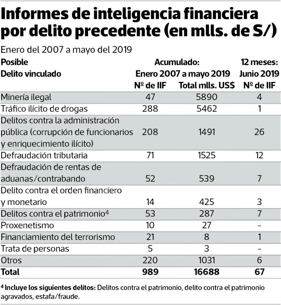 Los casos de corrupción ahora lideran las investigaciones de lavado de dinero de la UIF. Así, entre junio del 2018 y mayo del 2019, la UIF emitió 26 Informes de Inteligencia Financiera que provienen de presunta corrupción de funcionarios y enriquecimiento ilícito. Espinosa comentó a Gestión sobre este y otros puntos.