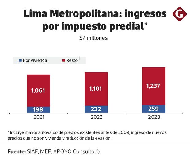 El año pasado, según el portal de Transparencia Económica del Ministerio de Economía y Finanzas (MEF), Lima registró ingresos por S/ 2,445 millones por impuestos municipales, lo que -entre otros impuestos- incluye el predial. Solo Lima Metropolitana recaudó unos S/ 595.4 millones por impuestos municipales.