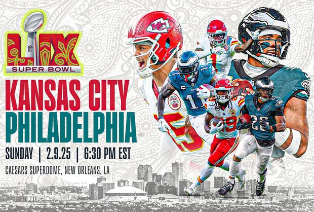 El Super Bowl LIX, la fiesta más grande del deporte en los Estados Unidos, regresa con uno de los juegos más esperados por la afición de la National Football League (NFL). Los Kansas City Chiefs, del quarterback Patrick Mahomes, esperan conseguir un histórico tricampeonato ante los Philadelphia Eagles, de Jalen Hurts, quienes esperan cobrarse la revancha de aquella final en la edición del Super Tazón LVII (2023) y por fin levantar el trofeo Vince Lombardi.