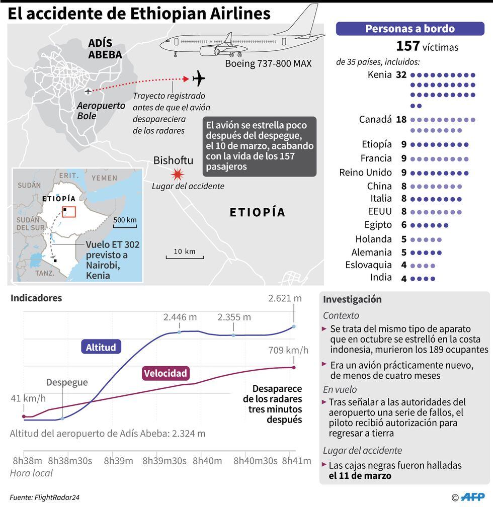 2 / 10 El domingo pasado, fallecieron 157 pasajeros y miembros de la tripulación de un 737 MAX operado por Ethiopian Airlines. (Foto: EFE)