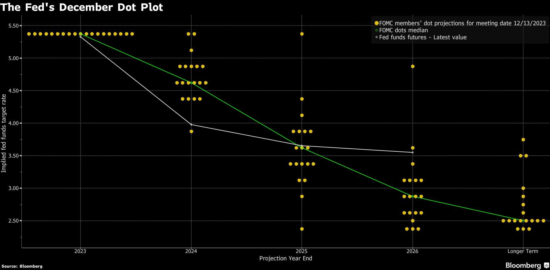 Las autoridades han previsto tres recortes de tasas para 2023, según la mediana de las previsiones, mientras que los operadores de futuros están descontando hasta seis a partir de marzo.