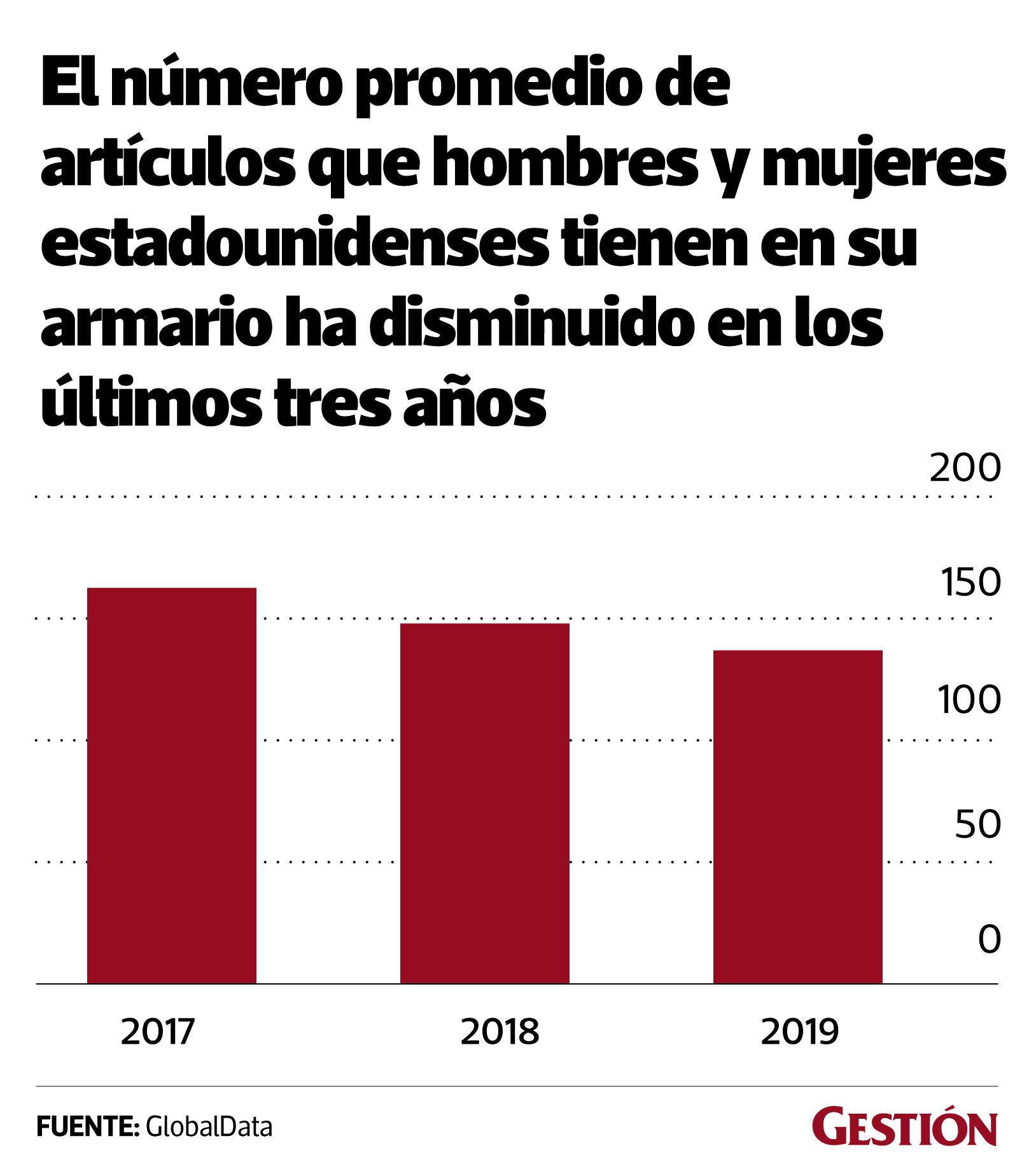 Algunos consumidores que compraron menos ropa durante este período podrían continuar reduciendo su gasto en vestuario. El tamaño del armario promedio en EE.UU. ya se ha reducido en los últimos tres años, según GlobalData. Si combina la pandemia y las preocupaciones sobre el costo ambiental de la moda, no es difícil de imaginar que hombres y mujeres puedan comprar incluso menos ropa en el futuro.