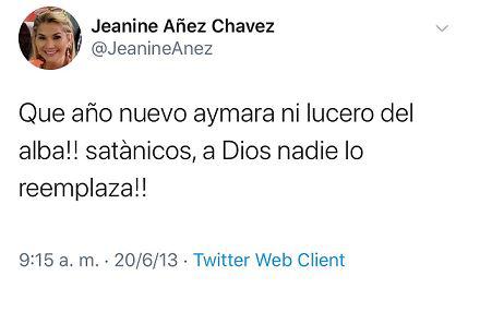 "Que año nuevo aymara ni lucero del alba!! satànicos, a Dios nadie lo reemplaza!!", dice una de las capturas (1) que circula, refiriéndose a la festividad indígena que se celebra cada 21 de junio en comunidades de Bolivia, Chile, Argentina y Perú en el marco del inicio de un nuevo ciclo agrícola.