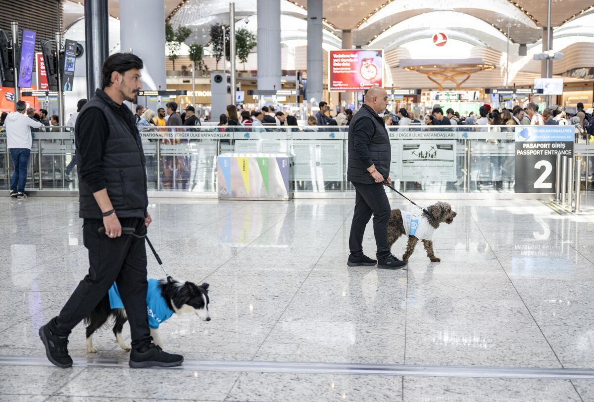 Desde hace dos meses, cuando se puso en marcha este proyecto, los perros y sus acompañantes recorren el mega-aeropuerto, que se encuentra del lado europeo de Estambul y recibió el año pasado a más de 76 millones de pasajeros. La megalópolis turca cuenta en su orilla asiática con otro aeropuerto internacional, el Sabiha Gökçen.