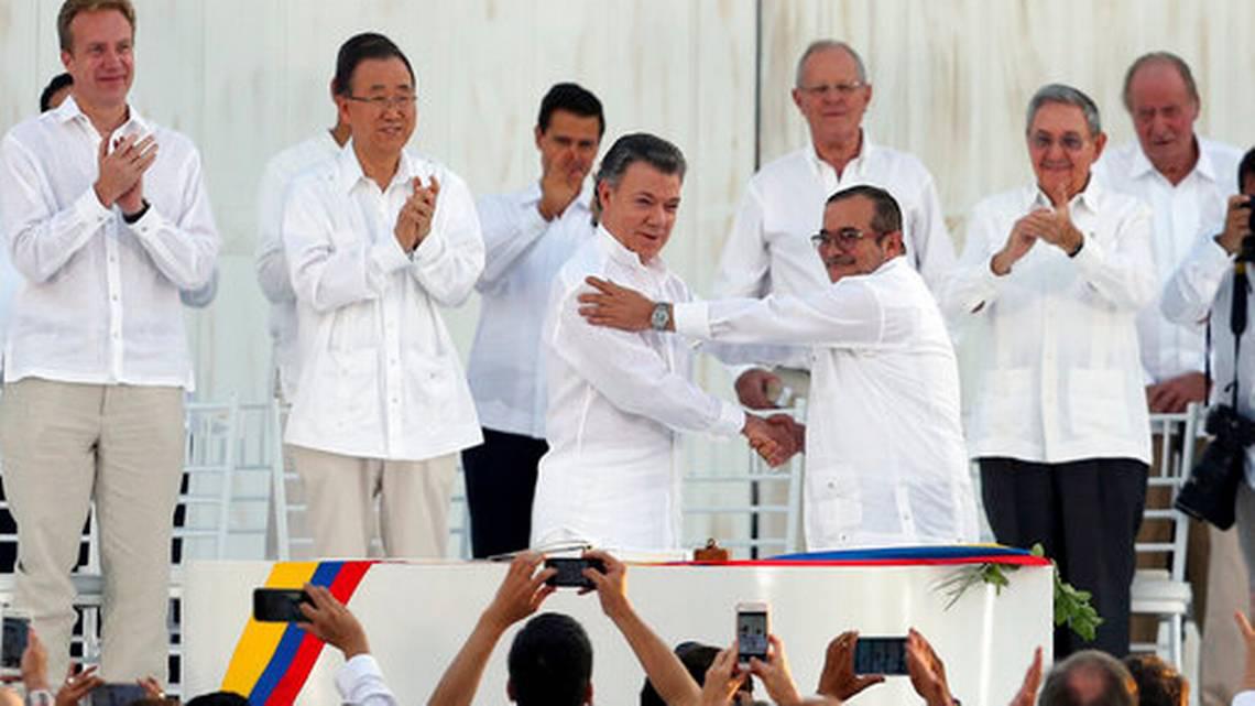 Una primera firma entre las partes se llevó a cabo en septiembre de 2016 en Cartagena, sin embargo, debido a un plebiscito en el que los colombianos rechazaron el documento suscrito, éste tuvo que modificarse y la firma definitiva para poner fin al conflicto armado ocurrió en noviembre de ese mismo año en una ceremonia en Bogotá encabezada por el presidente Santos y Rodrigo Londoño alias “Timochenko”, entonces considerado máximo líder de las FARC y actual líder del partido político formado por los rebeldes tras reintegrarse a la vida civil.