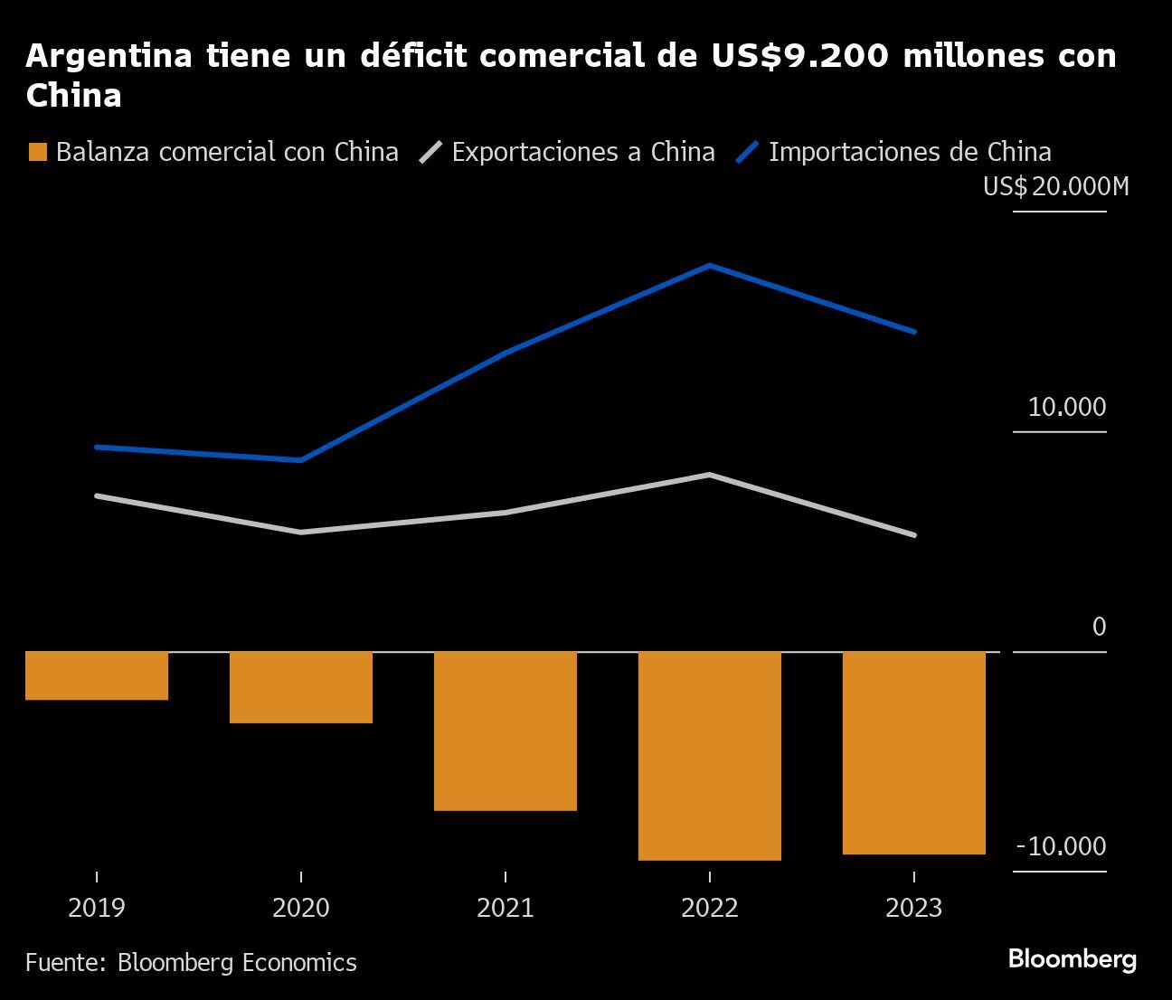 China actualmente es el segundo mayor comprador de exportaciones argentinas, solo por detrás de su vecino Brasil, y su principal fuente de importaciones, según datos recopilados por Bloomberg Economics. China es el mayor cliente de Argentina de soja sin procesar para alimentar su enorme cabaña porcina y de carne de vacuno. También es uno de los principales actores en la fiebre del litio en Argentina, que no ha pasado desapercibida en Estados Unidos, con inversiones en proyectos para producir el metal de las baterías que alimentarán su flota de autobuses eléctricos.