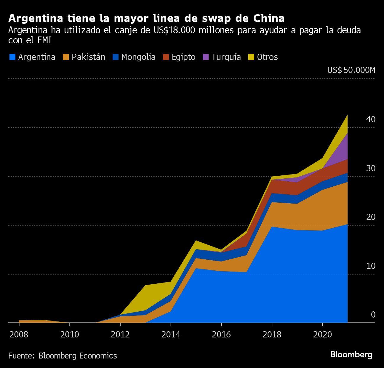Sin mencionar una línea de swap de divisas de US$ 18,000 millones, la mayor fuente de reservas extranjeras de las agotadas arcas del banco central. Se ha convertido en la línea de swap de yuanes más grande del mundo, acumulada en un momento en que China las ha utilizado en varios países para reafirmar su influencia mundial. A cambio, China se asegura el suministro de alimentos, minerales críticos como el litio y un nuevo mercado para su industria pesada.